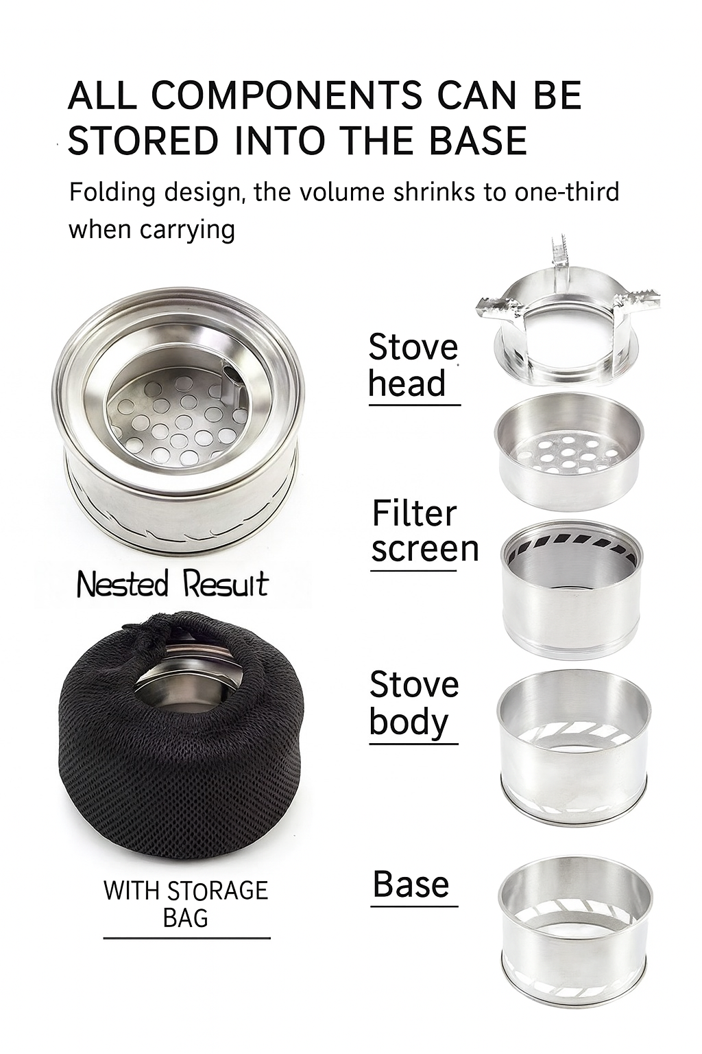 Efficient Heat & Windproof Design – Supports stable burning with excellent airflow, boiling water in about 15 minutes.